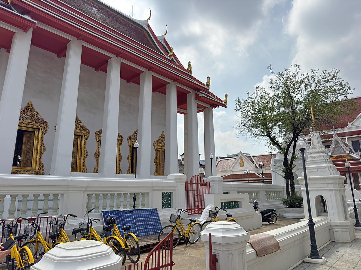 We joined the Co Classical Tour, which takes you by bike through the real Bangkok. We visited Chinatown, the flower market (the largest in Thailand!), an off-the-beaten-path temple, and cycled through countless narrow alleys. The entire tour lasted about three hours, with several stops along the way, including at a local market.