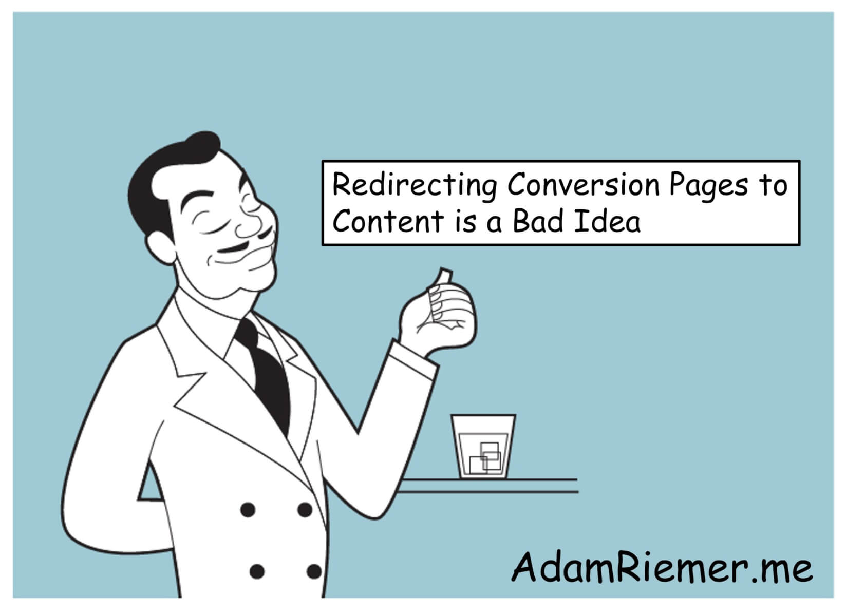 In the one off situation above where you do need to redirect from a conversion experience to a content experience, you also need to do some homework first.