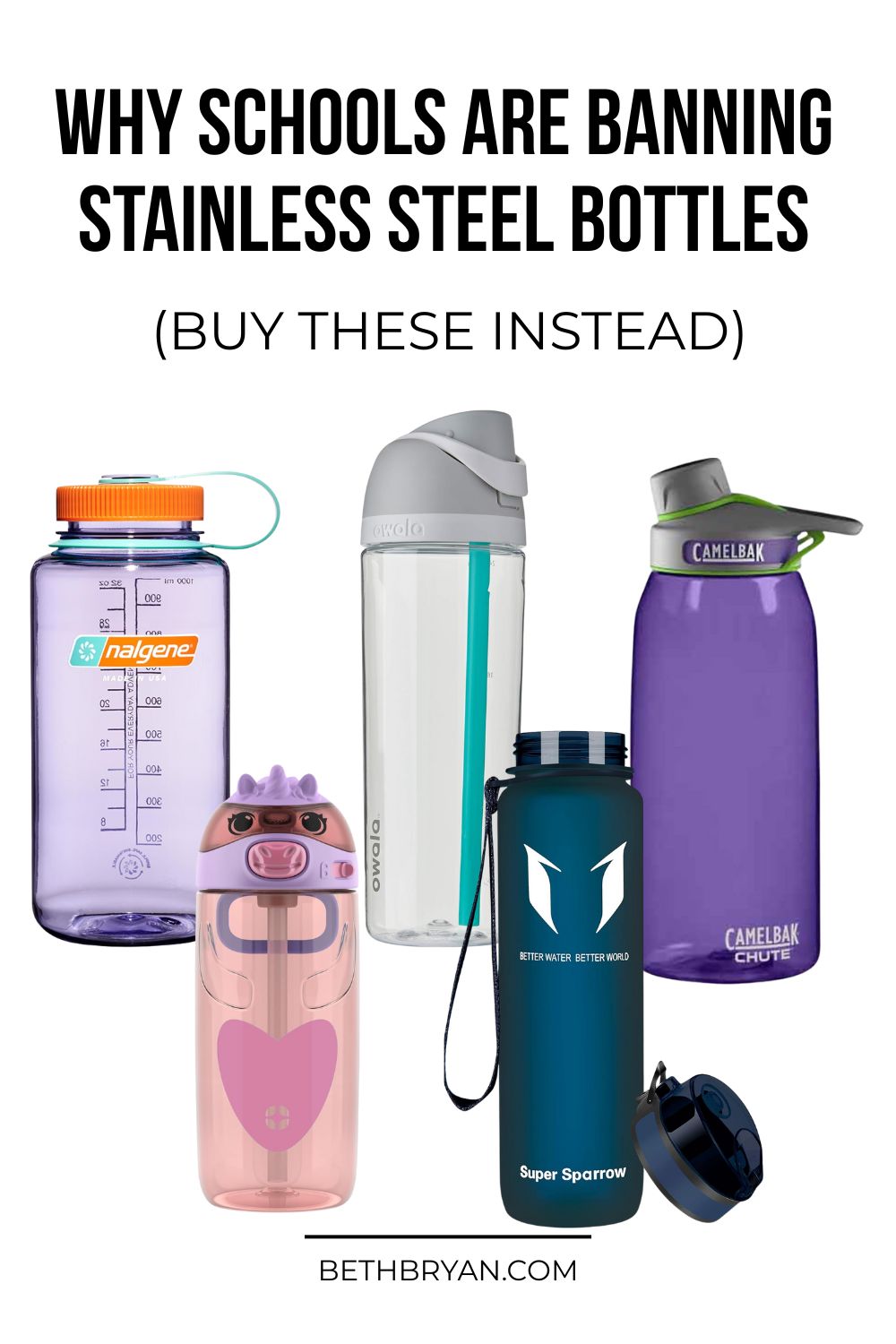 If you told me last year I’d be scouring Amazon for plastic water bottles, I’d have laughed all the way to the checkout line with my kid’s 40 ounce Owala. But here we are — more and more schools are rolling out new rules: No stainless steel water bottles allowed.