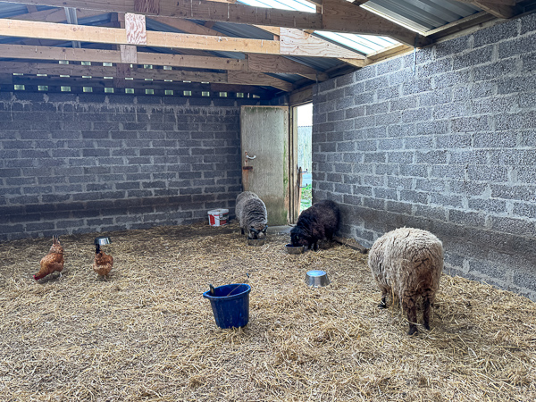 The sheep are fed in the morning in their shed with the door shut so they are in a routine where I can catch whoever and do stuff if I need to. Shearing will be soon so I try and keep this going all year round. There is nothing worse than unhelpful sheep.