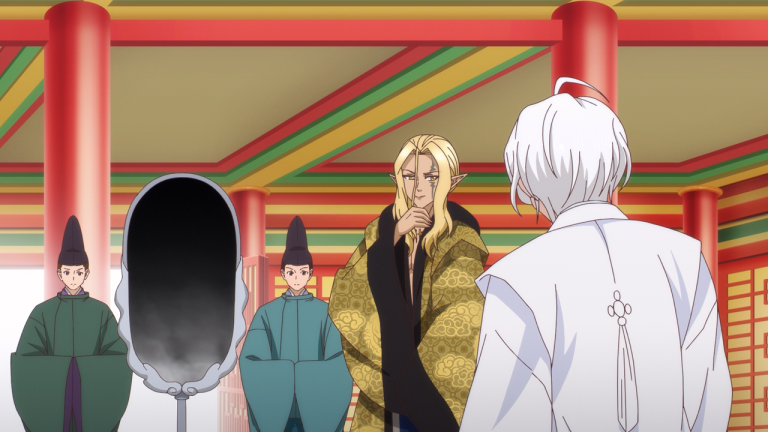 Meanwhile with Byakuya, he confronted the King and as expected, it did not go well. Although he rightfully called out on the utter hypocrisy of how the King is choosing to trust Raiju, (who’s known for his notorious habits of stirring up trouble over Odanna who had been someone he considered as a brother), the King still declared he had committed treason for keeping Odanna’s true form a secret and Raiju used the same trap on Byakuya as he did with Odanna, the Form-Revealing mirror, which then revealed Byakuya’s true beast form.