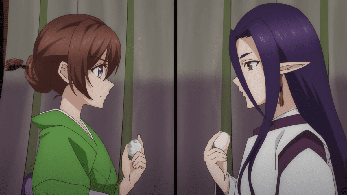 It was then when Raiju dropped a new lore tidbit revealing that both he and Byakuya were originally from the Eternal Realm. And one of the interesting things, is that the Eternal Realm is a place where both humans and ayakashi co-exist side by side. Odanna mentioned this back in Season 1 Ep 17 when he spoke about the rainbow clam shell they picked up at the beach at Orio-ya. It’s said to be a foreign land where humans ruled in some eras and ayakashi ruled in others. We later learned in Season 1 Ep 24 that that shell is actually a petal that belonged to the Hourai Gem Tree, which means it was originally from there as well.