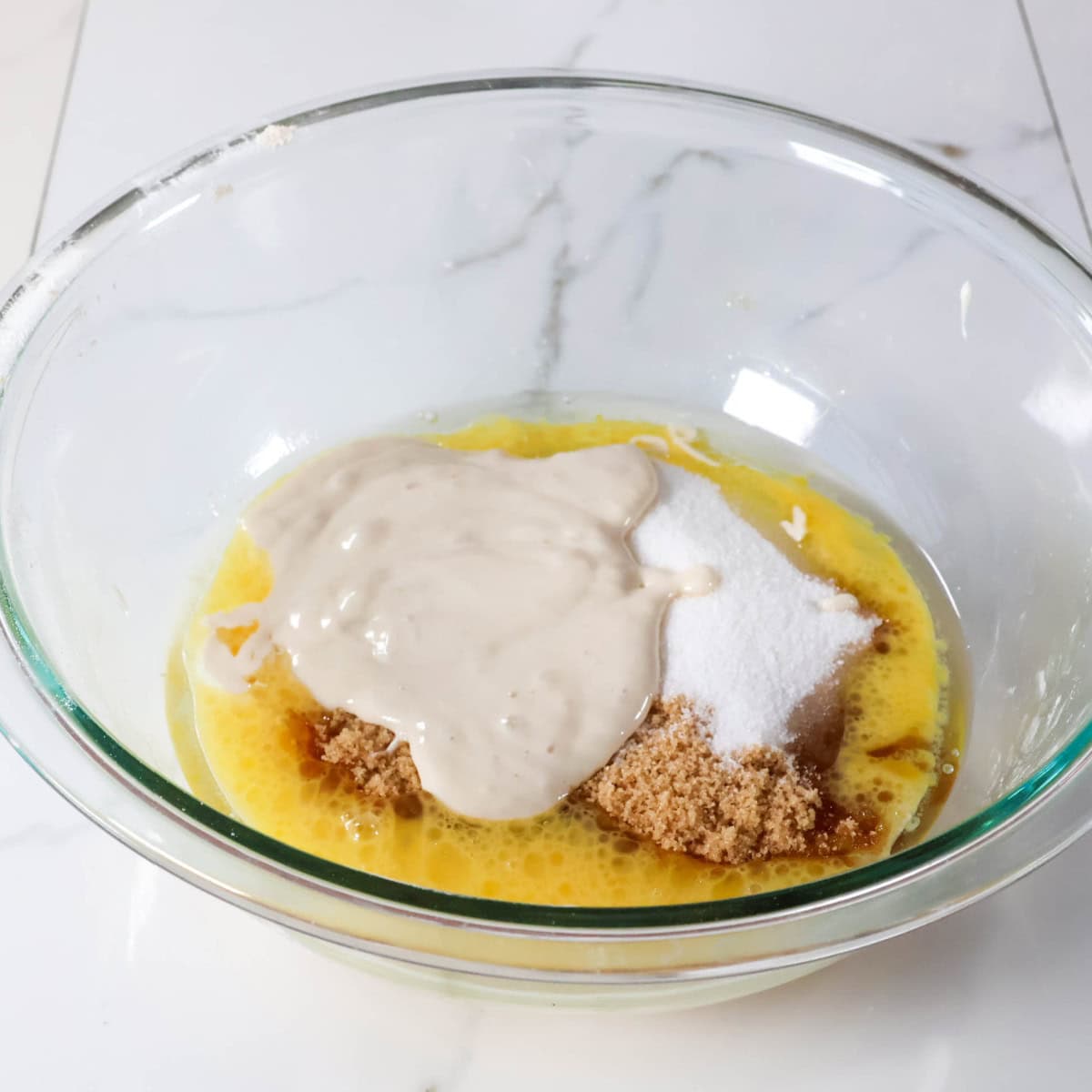 1. Step 2: Egg, vegetable oil, brown sugar, sugar, s and sourdough starter