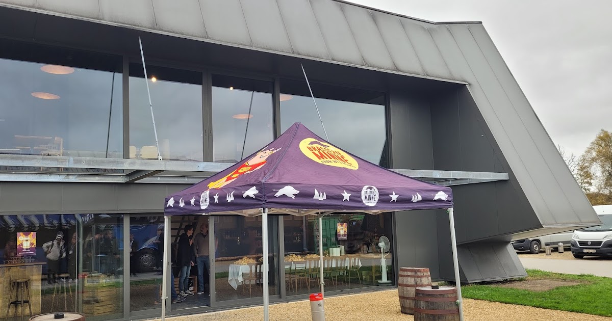 Brasserie Minne is one I’ve encountered before, in Brussels bar Gist. The brewery itself is not far out of Marche-en-Famenne, where I was staying for this year’s Brussels Beer Challenge judging. That said, it’s still quite remote, and based in a very utilitarian industrial park, so I don’t know who is making the effort to come and drink in the compact but well-appointed two-storey taproom. The company logo is the wild boar (sanglier, en Français) and it features heavily in their branding.