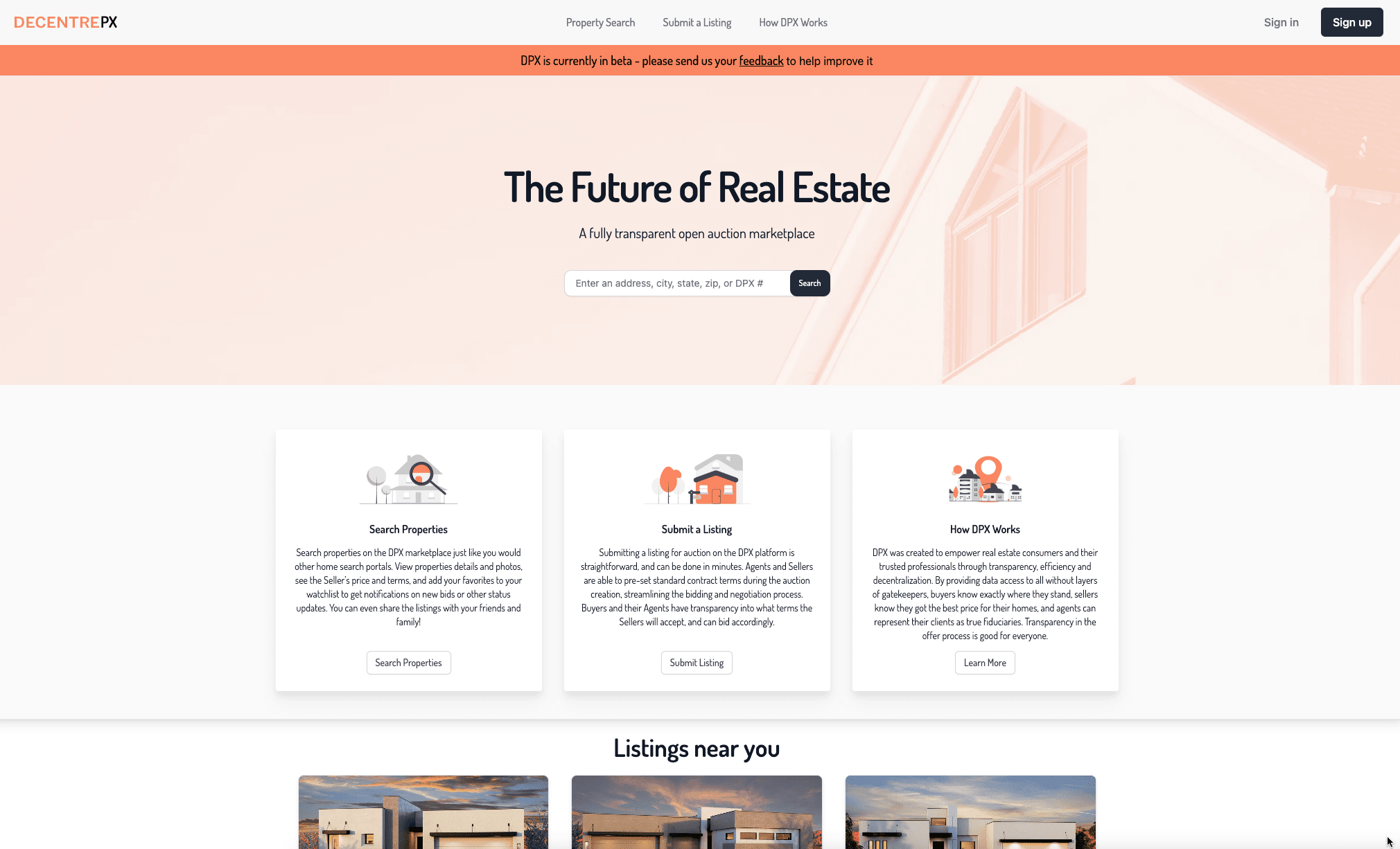 Fundamentally, Decentre Property Exchange (“DPX” for short) is an online marketplace for real estate.