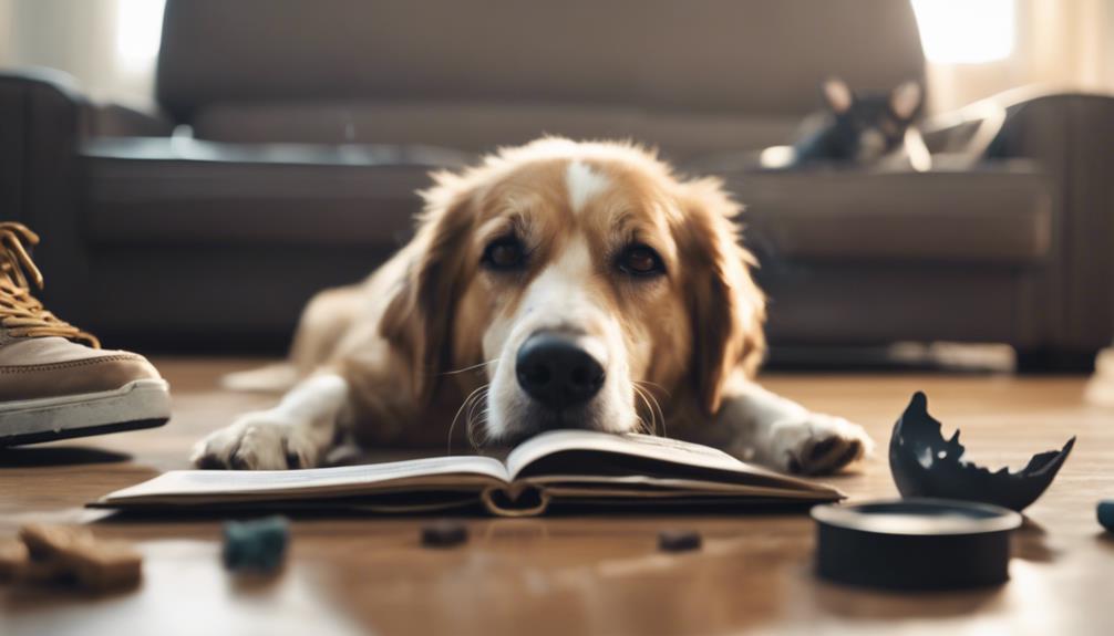 To address your dog’s tendency to eat everything, it’s important to understand how managing anxiety and boredom plays a significant role in this behavior. Dogs, like humans, can experience anxiety triggers that lead to destructive behaviors such as excessive chewing and eating non-food items. Identifying and addressing the root cause of your dog’s anxiety is essential in preventing them from ingesting harmful objects.