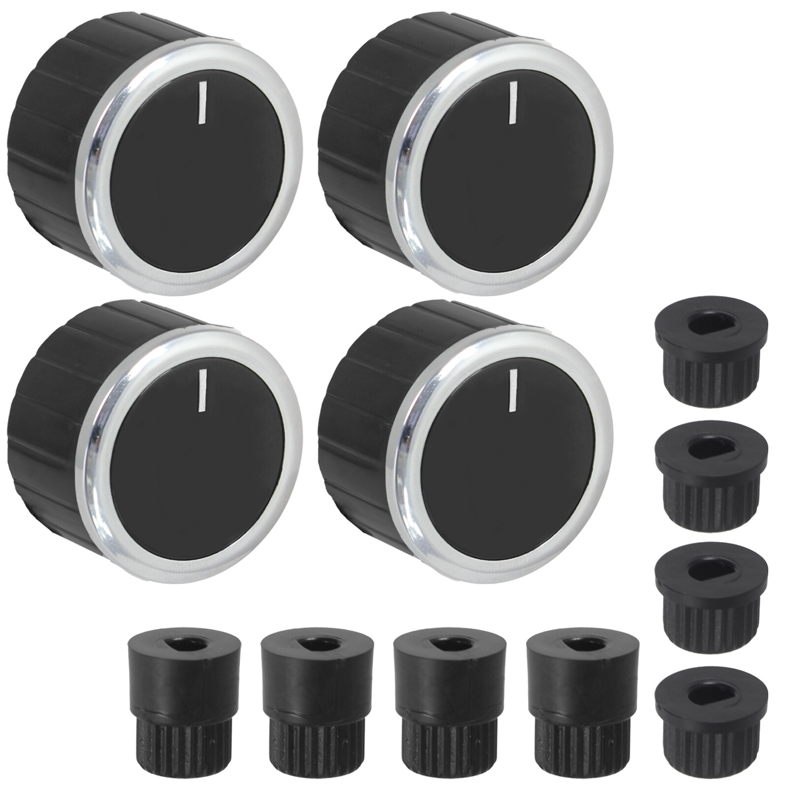 UNIVERSAL Oven Switch Knobs + Adaptors Set for Cooker Grill Hob Black x 4 Pack