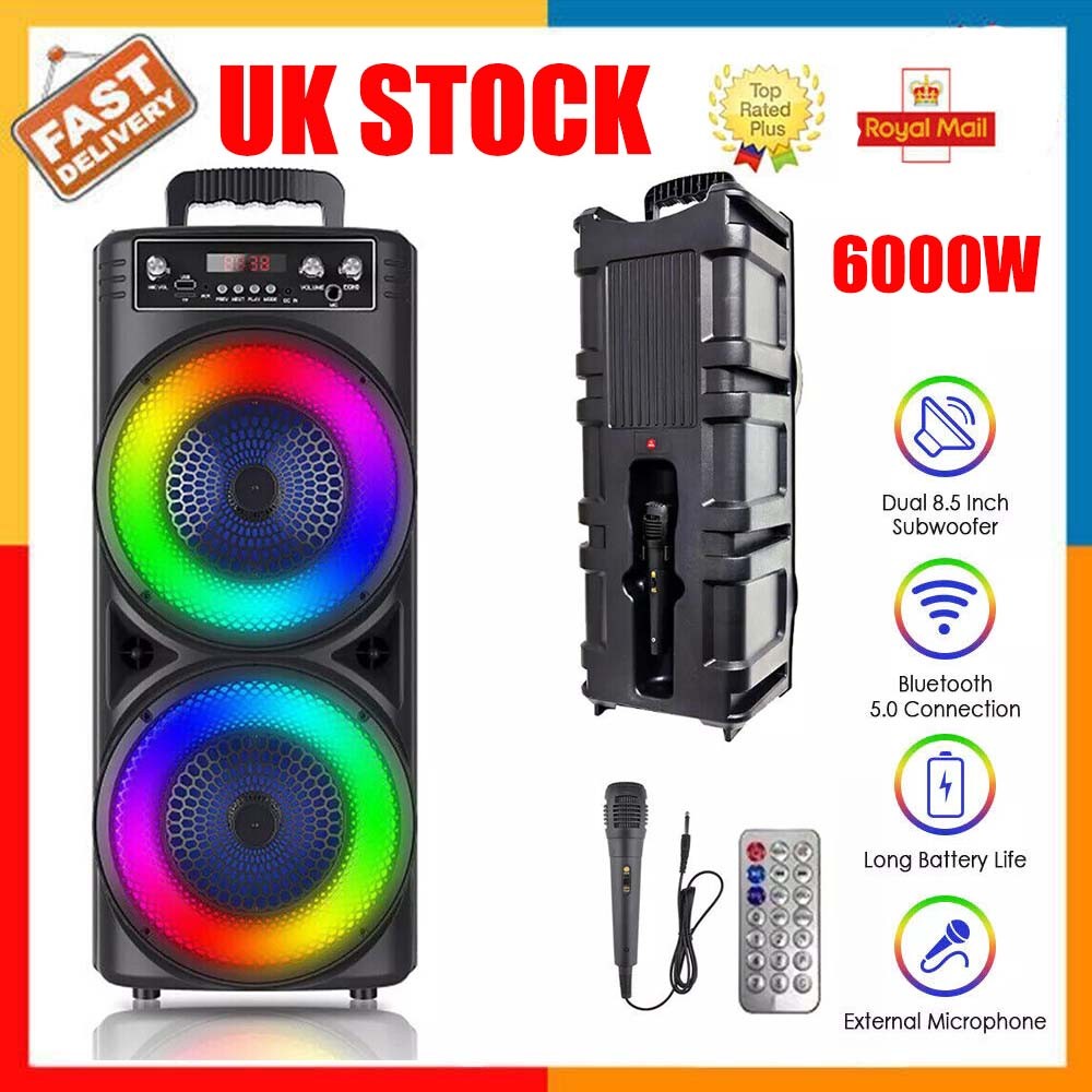 6000W Portable Bluetooth Speaker Sub Woofer Heavy Bass Sound System Mic Party UK