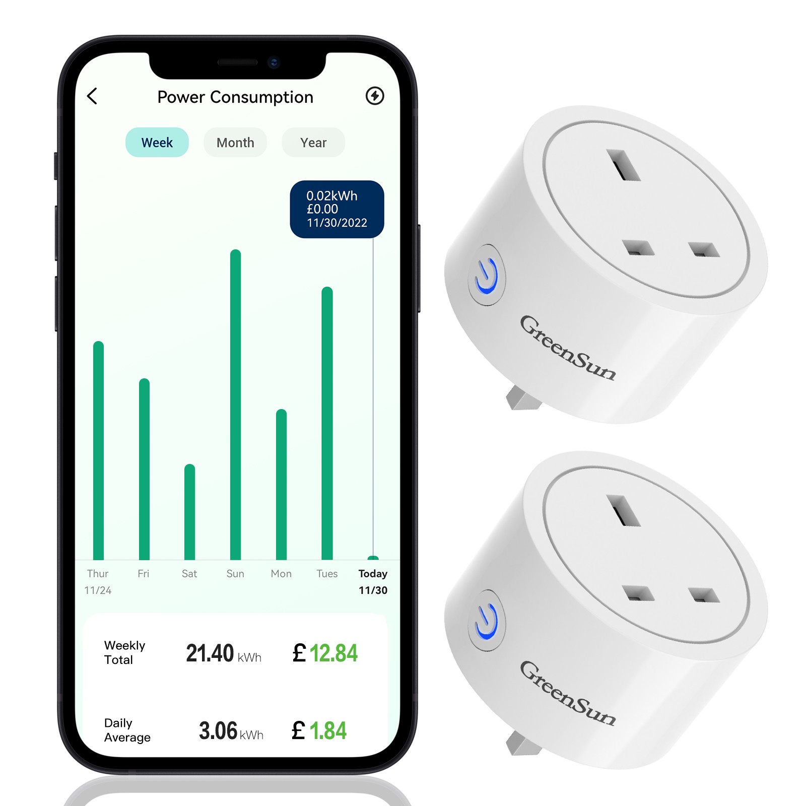 2pc Wireless WiFi Smart Socket UK Plug with Energy Monitor For Alexa Google Home