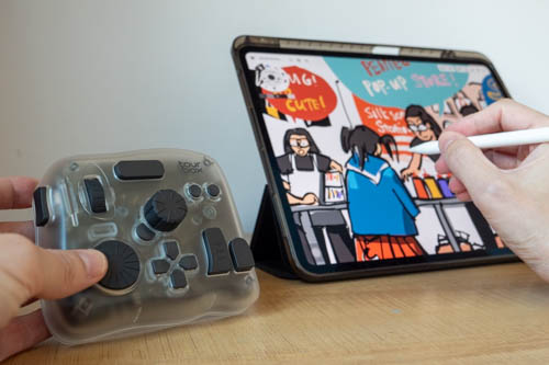 This shortcut remote works great with tablets, e.g. Windows tablets and iPads, because tablets don’t have physical shortcut buttons. When used with a tablet, it’s extremely convenient especially for digital painting because you can have one hand always for drawing, and the other hand always on the controls.