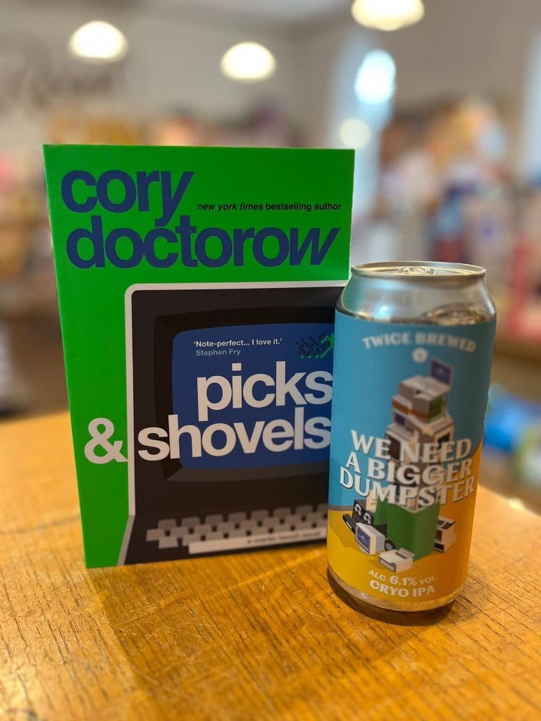 Drink We Need A Bigger Dumpster as you dive into Doctorow’s fast-paced, tech-fuelled thriller. Its bold, complex flavours mirror the risk, ingenuity, and energy of a city on the brink of a digital revolution, making this pairing a perfect storm of hops and high-octane storytelling.