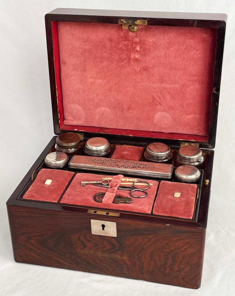 BEAUTIFUL ANTIQUE ROSEWOOD DRESSING VANITY JEWELLERY CASE 1880 BOX CABINET