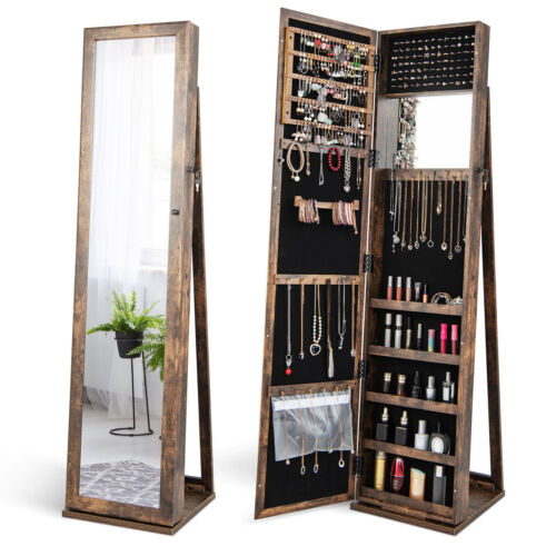 Free-standing Jewelry Armoire Lockable Jewelry Storage Organizer Jewelry Cabinet