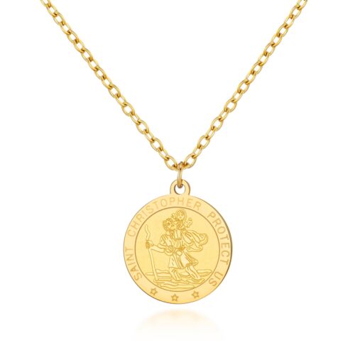 Men’s Gold Plated Stainless Steel St Christopher Necklace