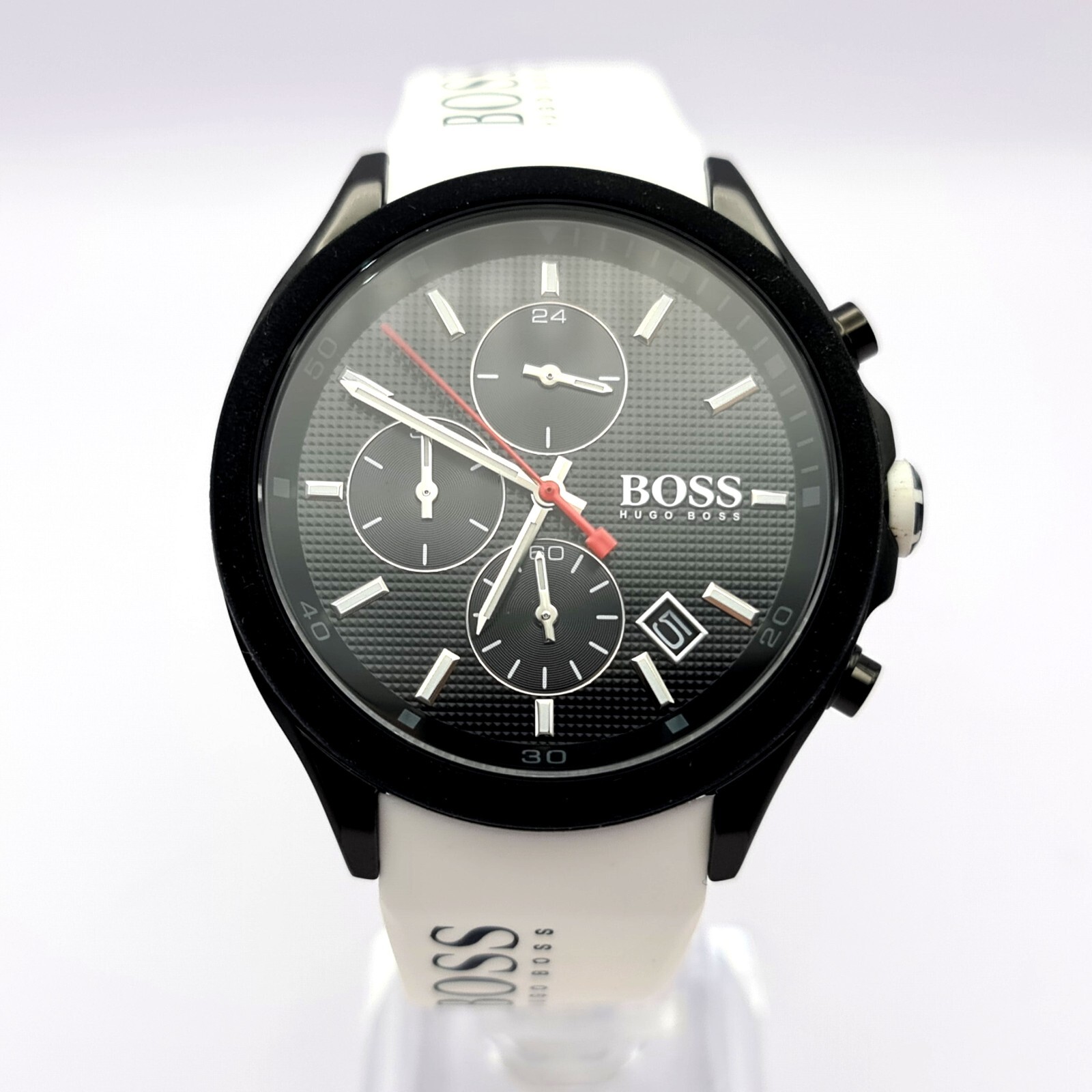 NEW GENUINE BOSS VELOCITY HB1513718 BLACK WHITE RUBBER STRAP MEN’S WATCH