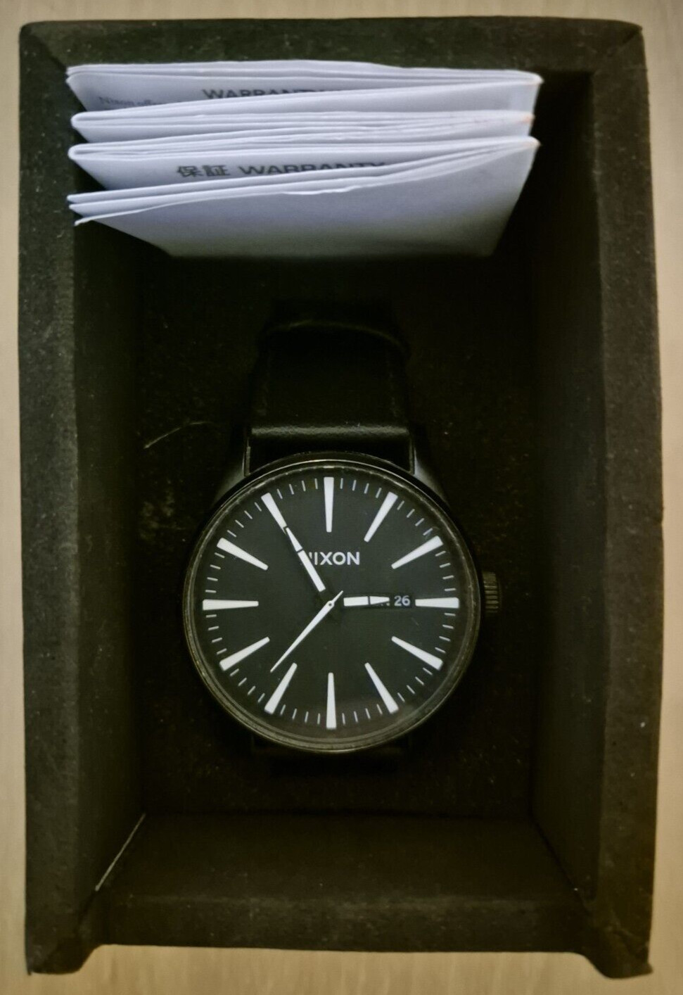 Nixon The Sentry Leather A105 005 Black / White Men’s Analogue Watch Day Date