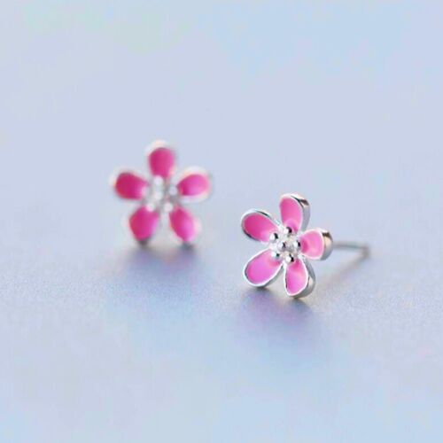 Pink Cherry Flower Earrings Stud 925 Sterling Silver Women Girls Jewellery gift