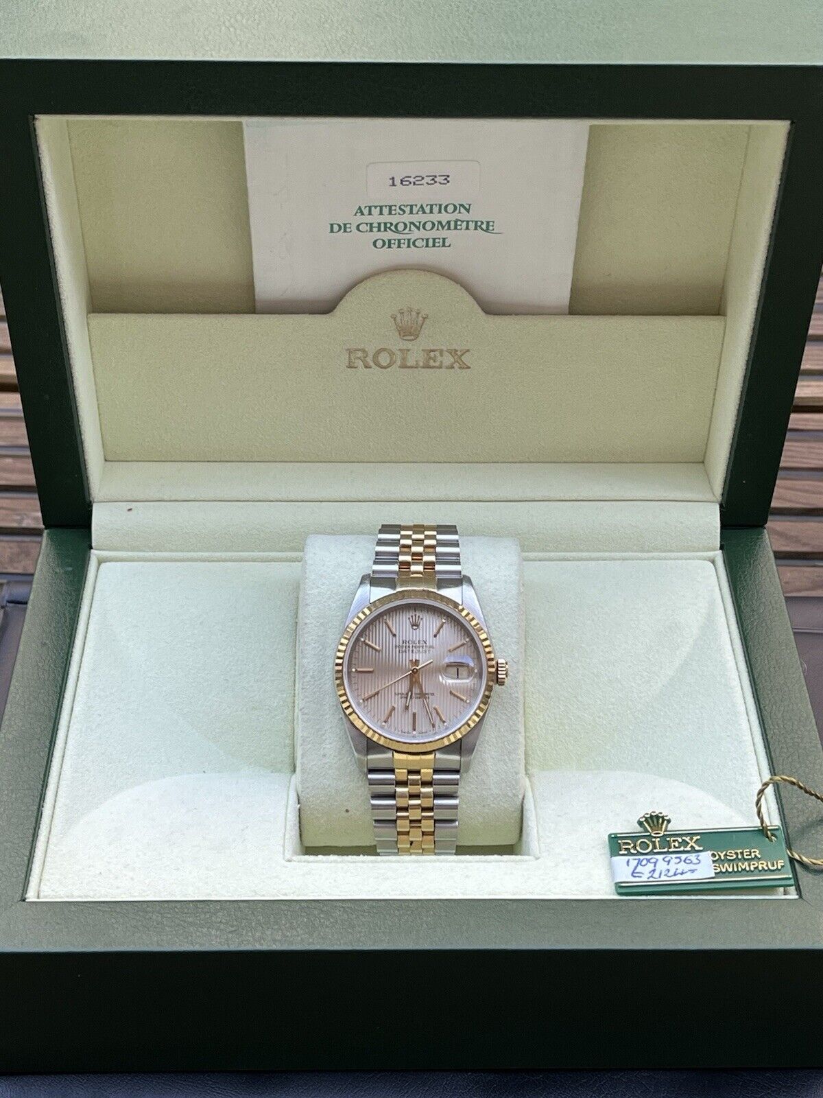 Rolex Datejust 16233 Mens Watch Champagne Tapestry Dial – Papers, Tag & Booklets