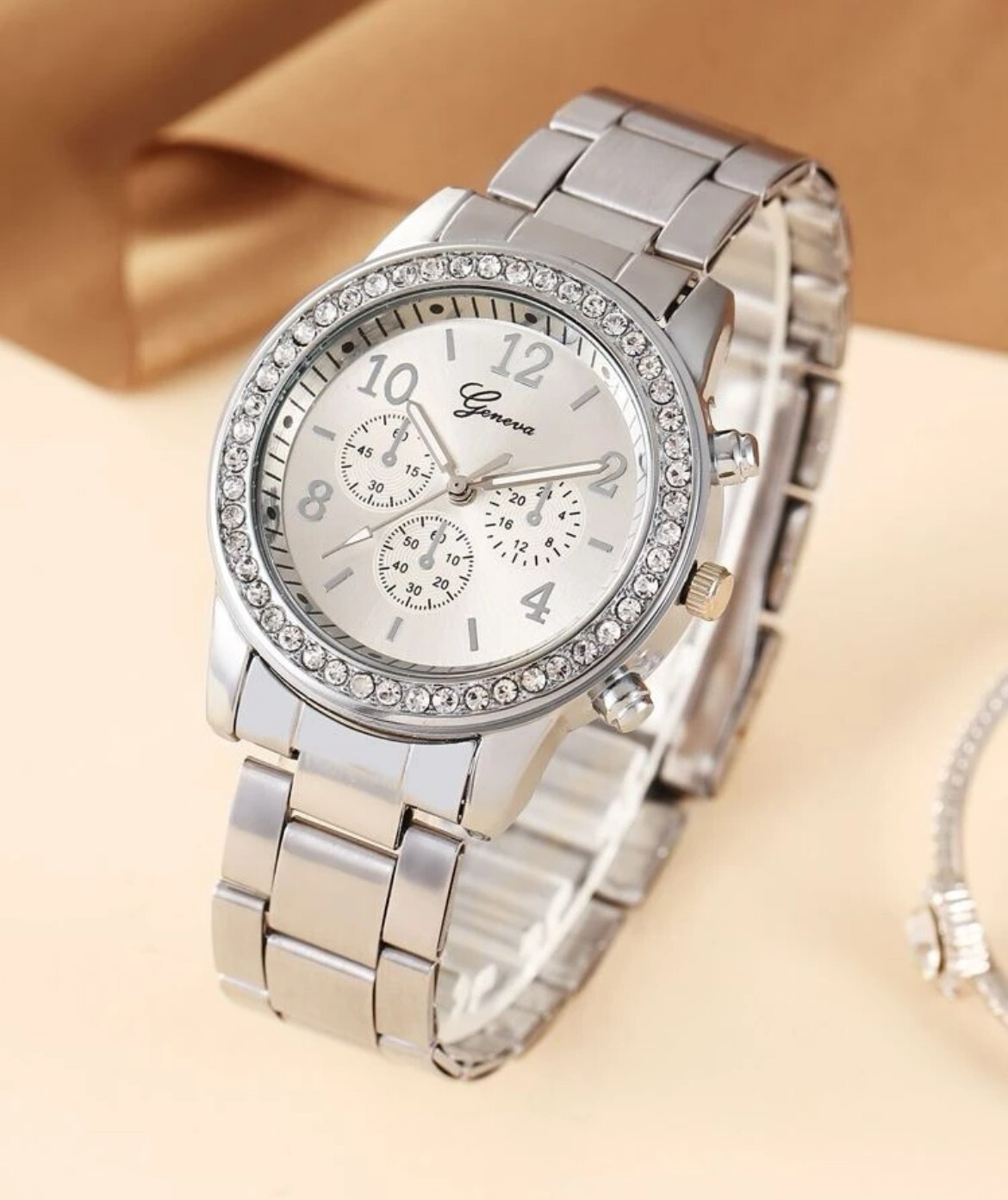 Silver Rhinestone Ladies Girls Quartz Wristwatch Watch Waterproof Female UK