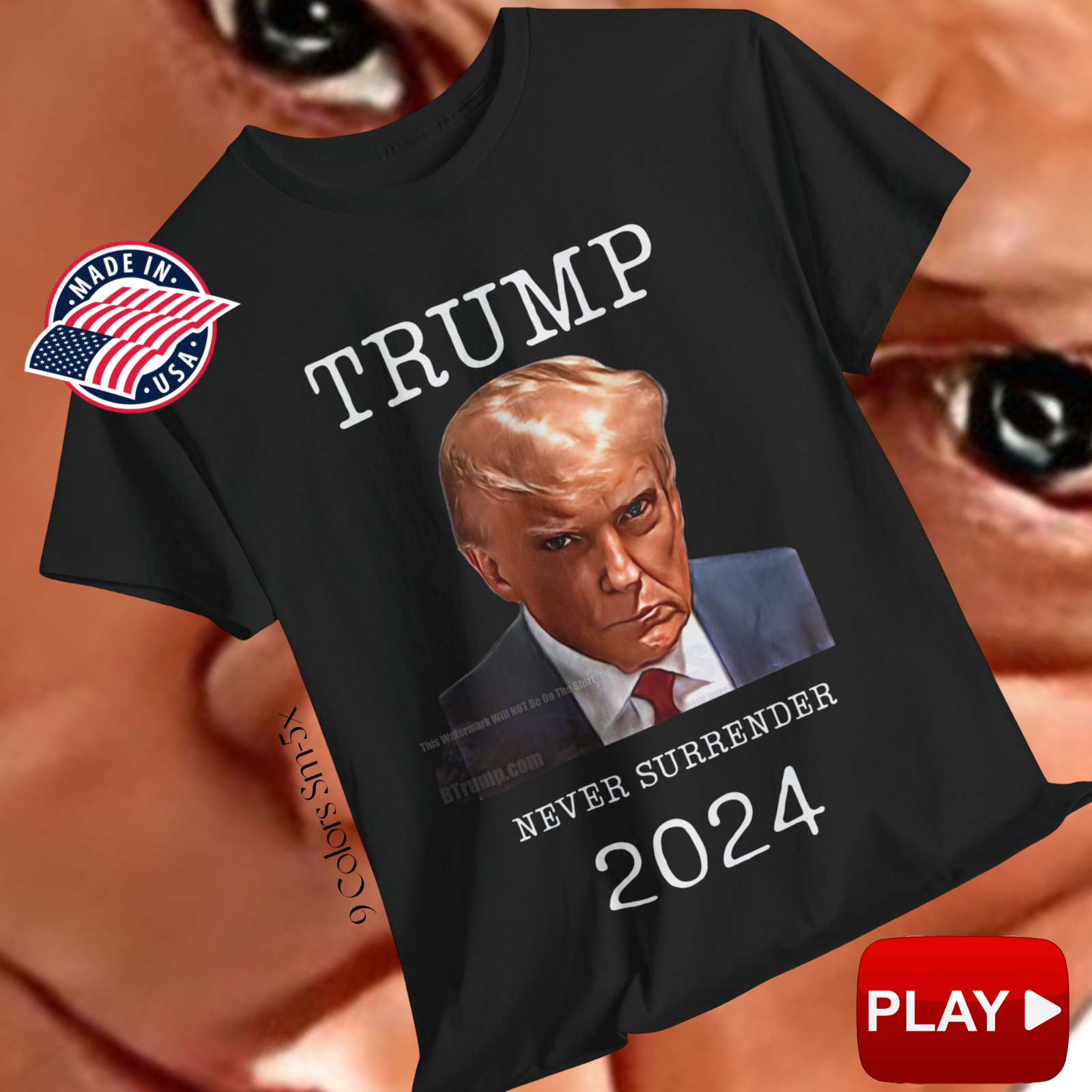 Trump Never Surrender MugShot T-Shirt 2024 Black Trump 2024 T-Shirt Trump Shirt