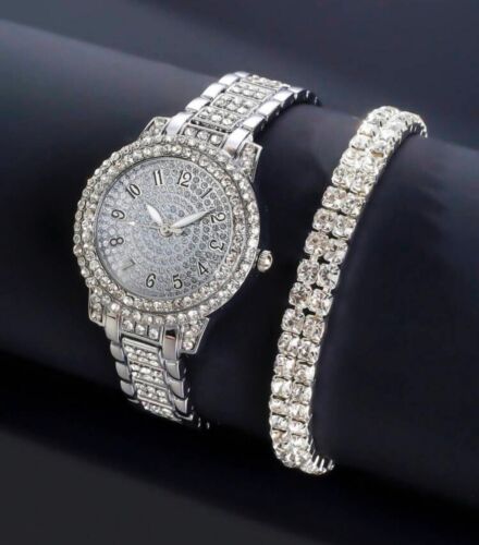 Watch Gift Set for Women Ladies Silver WATCH + BRACELET Rhinestone Top Quality
