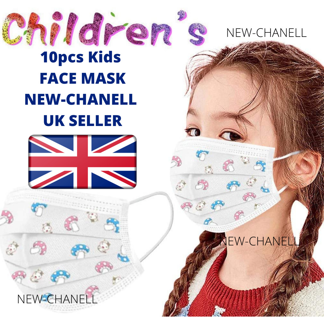 10 BLUE PRINT KIDS CHILDREN DISPOSABLE FACE MASK OUTDOOR SCHOOL UK 3 PLY