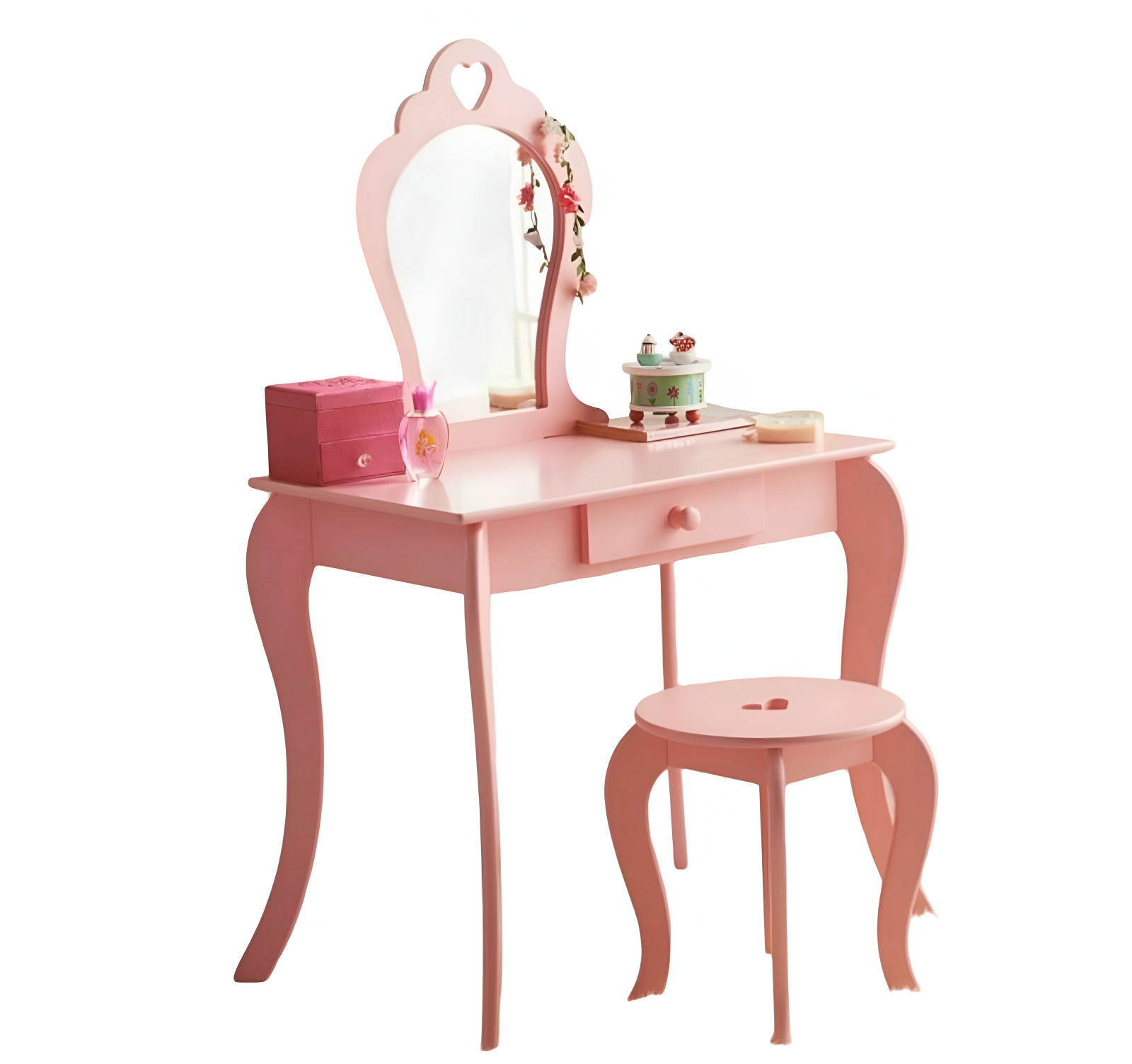 Amelia Vanity Set / Dressing Table With Mirror & Stool Children Kids Wooden Pink