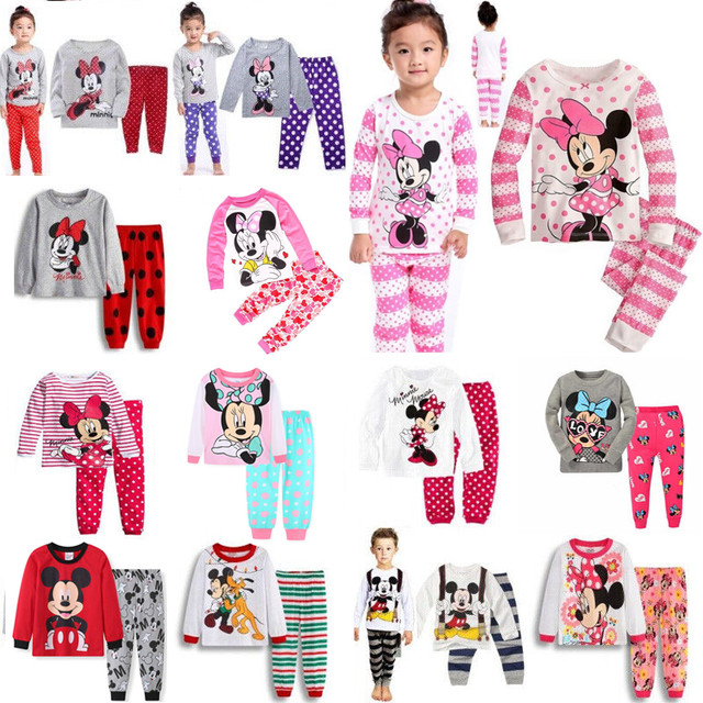 Kids Boy Girls Micky Minie Mouse Pyjamas Sleepwear Long Sleeve Nightwear Pjs Set