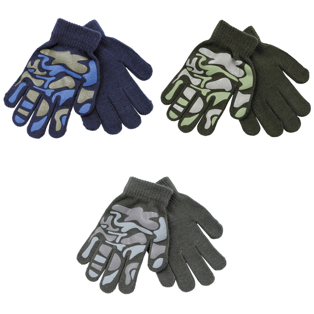 Kids Chidrens Boys Thermal Magic CAMOUFLAGE Gloves Grip Gripper Stretch Winter