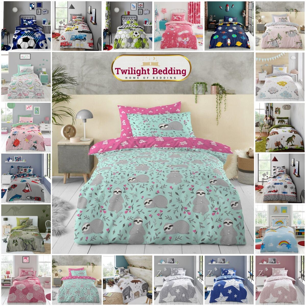 KIDS DUVET COVER SETS Reversible Quilt Bedding Pillowcase Children Boys Girls