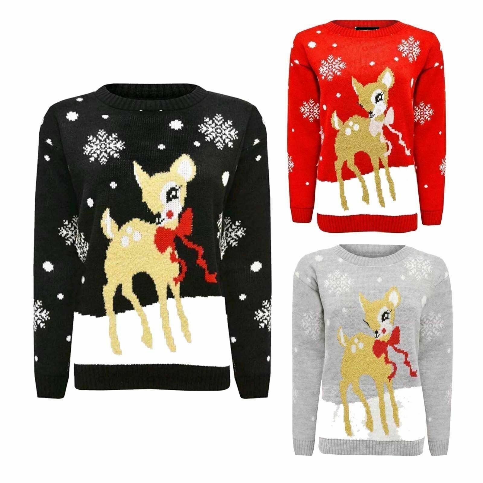 New Boy Girls Kids Deer Bambi Christmas Novelty Xmas Party Jumper Sweater Top