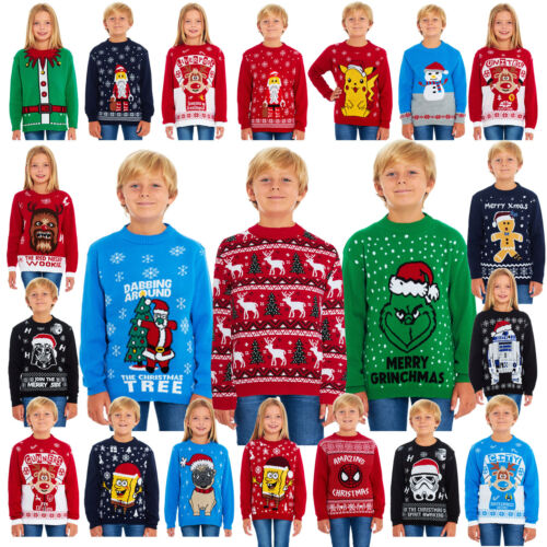 New Kids Childrens Boys Girls Xmas Christmas Winter Jumper Sweater Knitted Retro