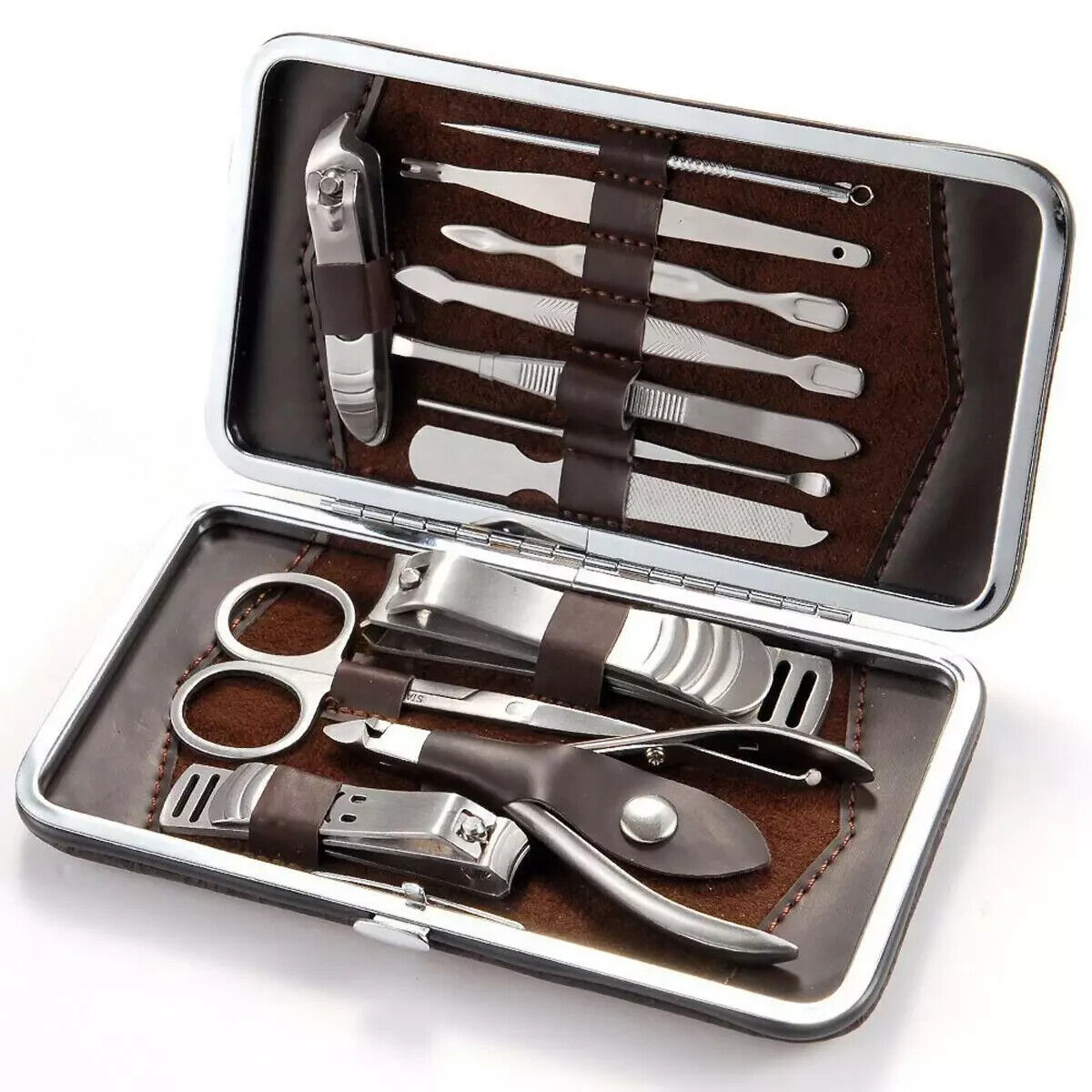 12 Piece Manicure Pedicure Nail Clippers Care Set Cutter Kit Case Mens Women
