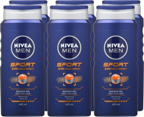 6 x 400ml NIVEA MEN Sport Shower Gel Refreshing Body Wash Lime Scent
