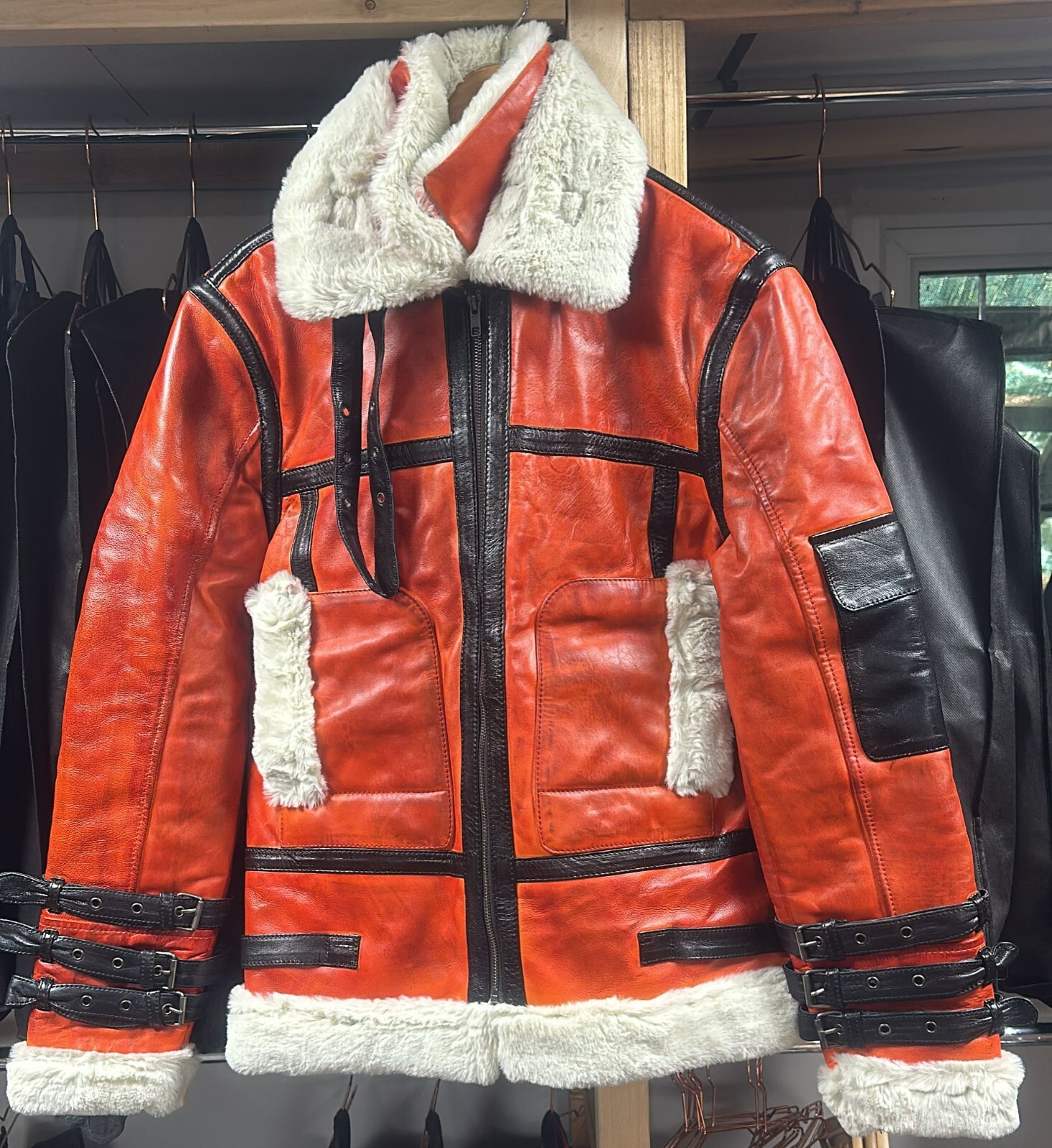 Clearance Sale Men’s RAF Bomber Flight Fur Shearling Real Leather Jacket