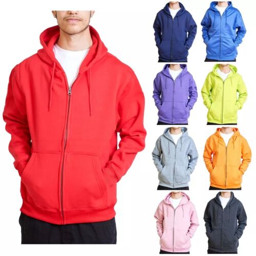 Men’s Casual Zipper Hoodie Plain Polyester Fleece Hooded Sweatshirt Jacket Top