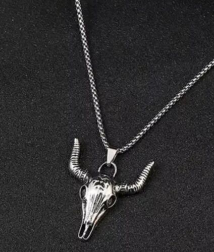 Mens Cow Bull Head Skull Pendant Necklace Stainless Steel Chain For Men Jewelry