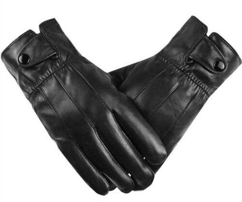 Men’s Fleece Lined Leather Gloves Driving Casual Warm Classic Soft Gloves Black