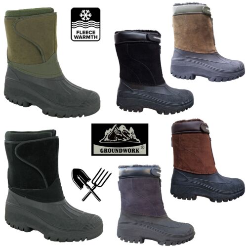 Mens Groundwork Snow Winter Boots Ice Calf Waterproof Hiking Touch Fasten Strap