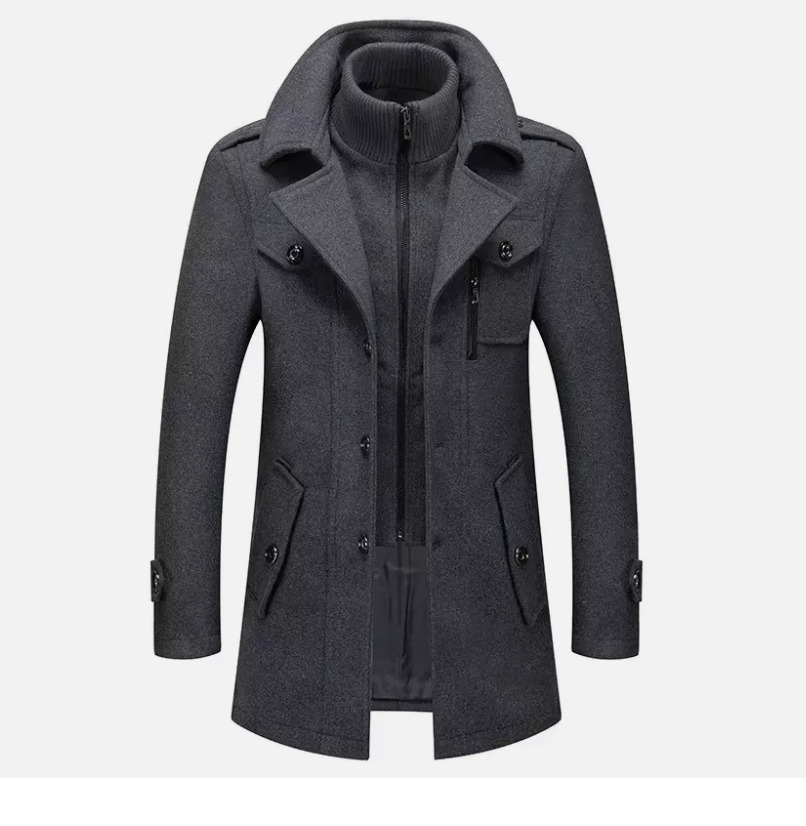 Men’S Winter Woolen Overcoat Double Collar Anti-Cold Nestle Jacket Cross-Border