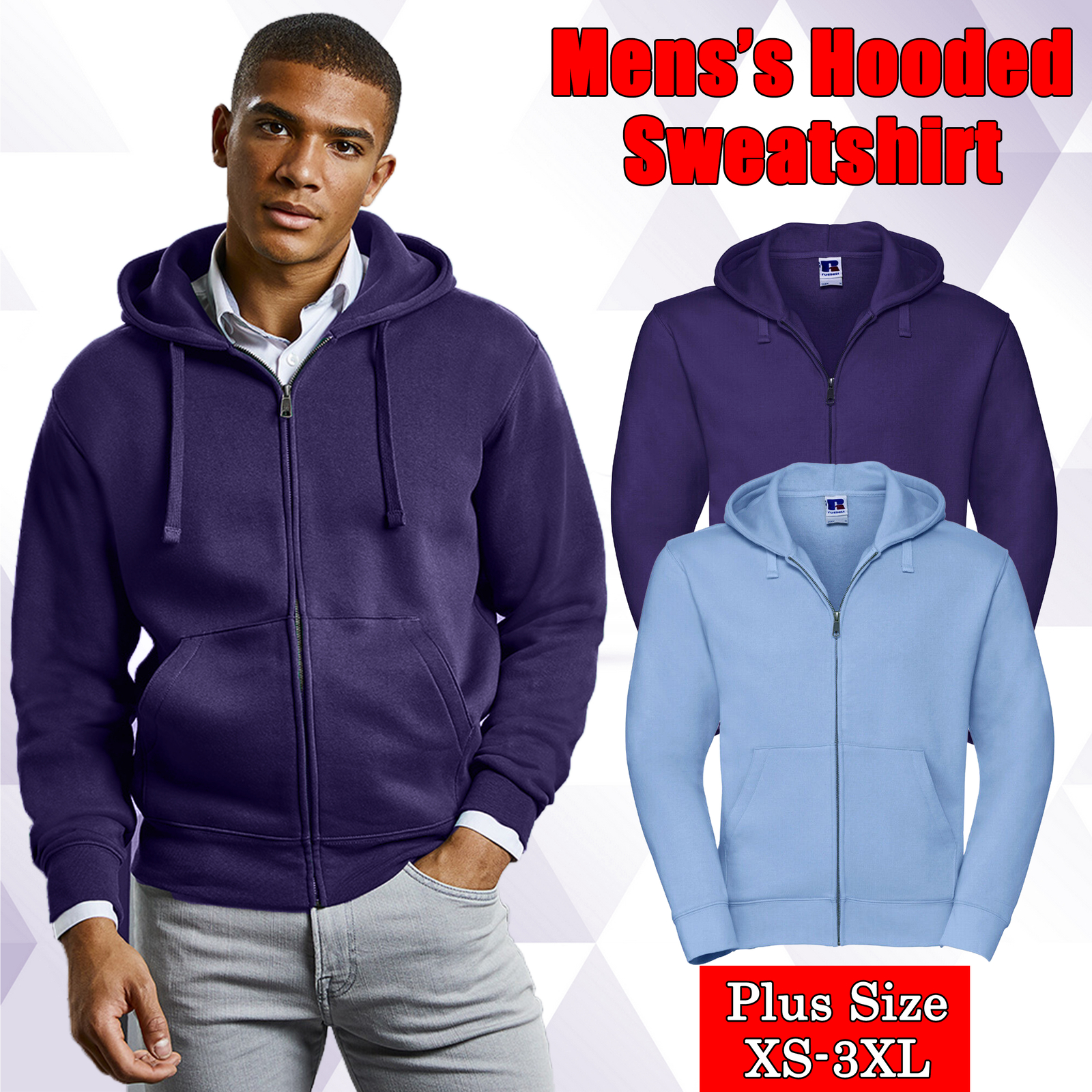 Mens Zipped Hooded Sweatshirt Plain Zip Up Hoodie Cotton Rich Plus Size XS-XXXL