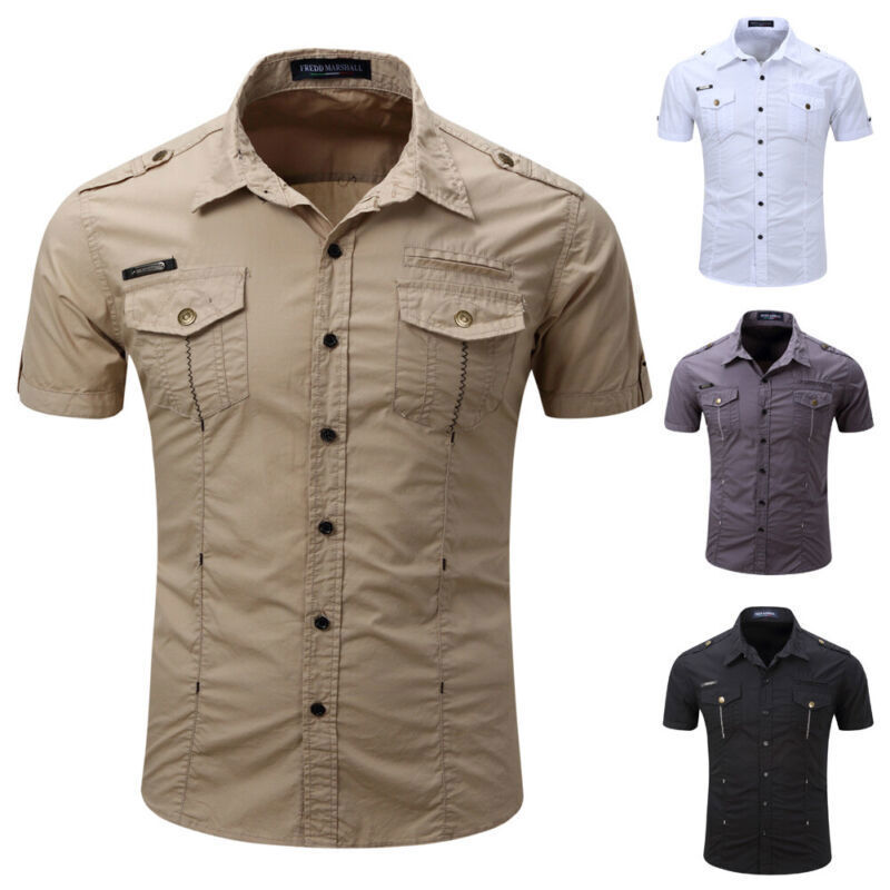 Summer Men’s Fashion Casual Dress T-Shirt Short Sleeve Shirt Tops Military Style