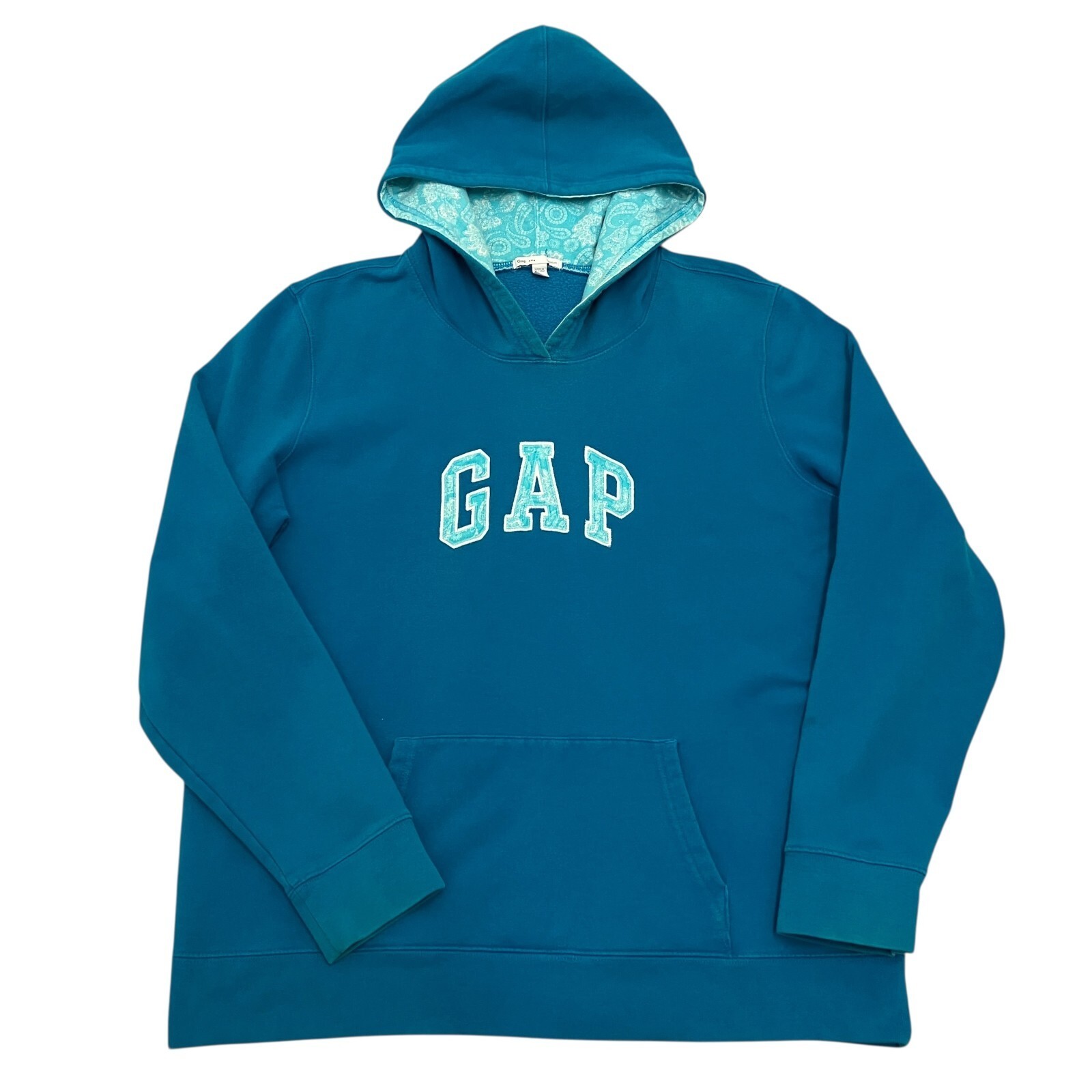 GAP Hoodie Sweatshirt Blue Womens XL Stretch Cotton Logo Spell Out Pullover