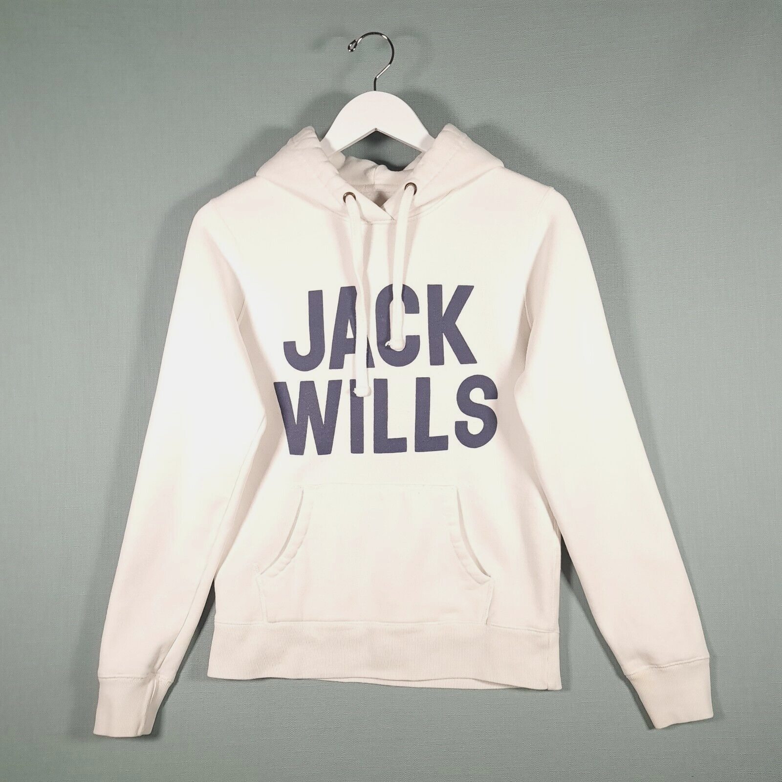 JACK WILLS Hoodie Womens 10 White Blue Sweatshirt Pullover Jumper Top