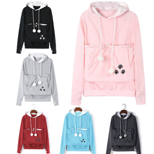 Pet Hoodies Sweatshirt Casual Big Pocket Cat Carrier Women Long Pullover Pocket