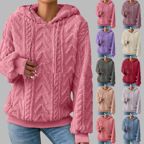 Women Fluffy Fleece Sweatshirt Hoodies Teddy Bear Hooded Jumper Tops Pullover