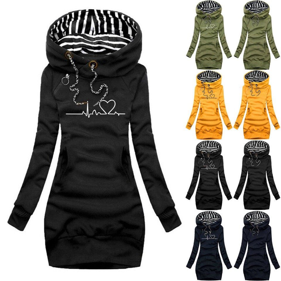 Women Hooded Hoodies Dress Long Tops Pullover Casual Sweatshirts Shirt PLUS SIZE