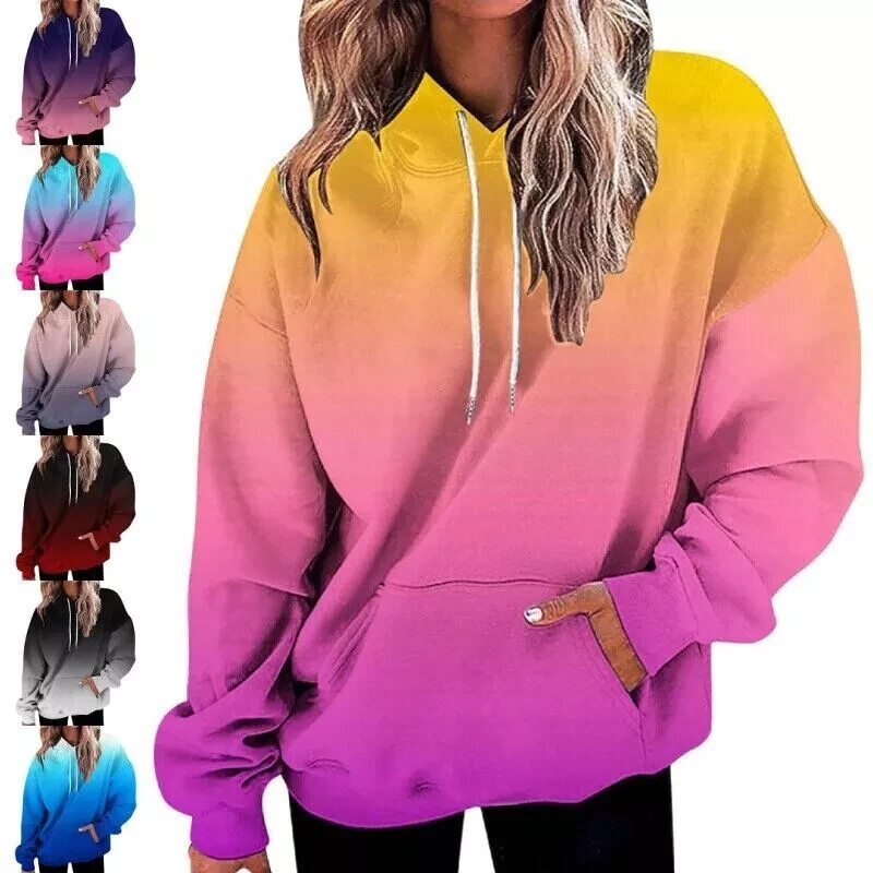 Womens 3D Gradient Long Sleeve Hoodie Tops Ladies Casual Baggy Hooded Sweatshirt