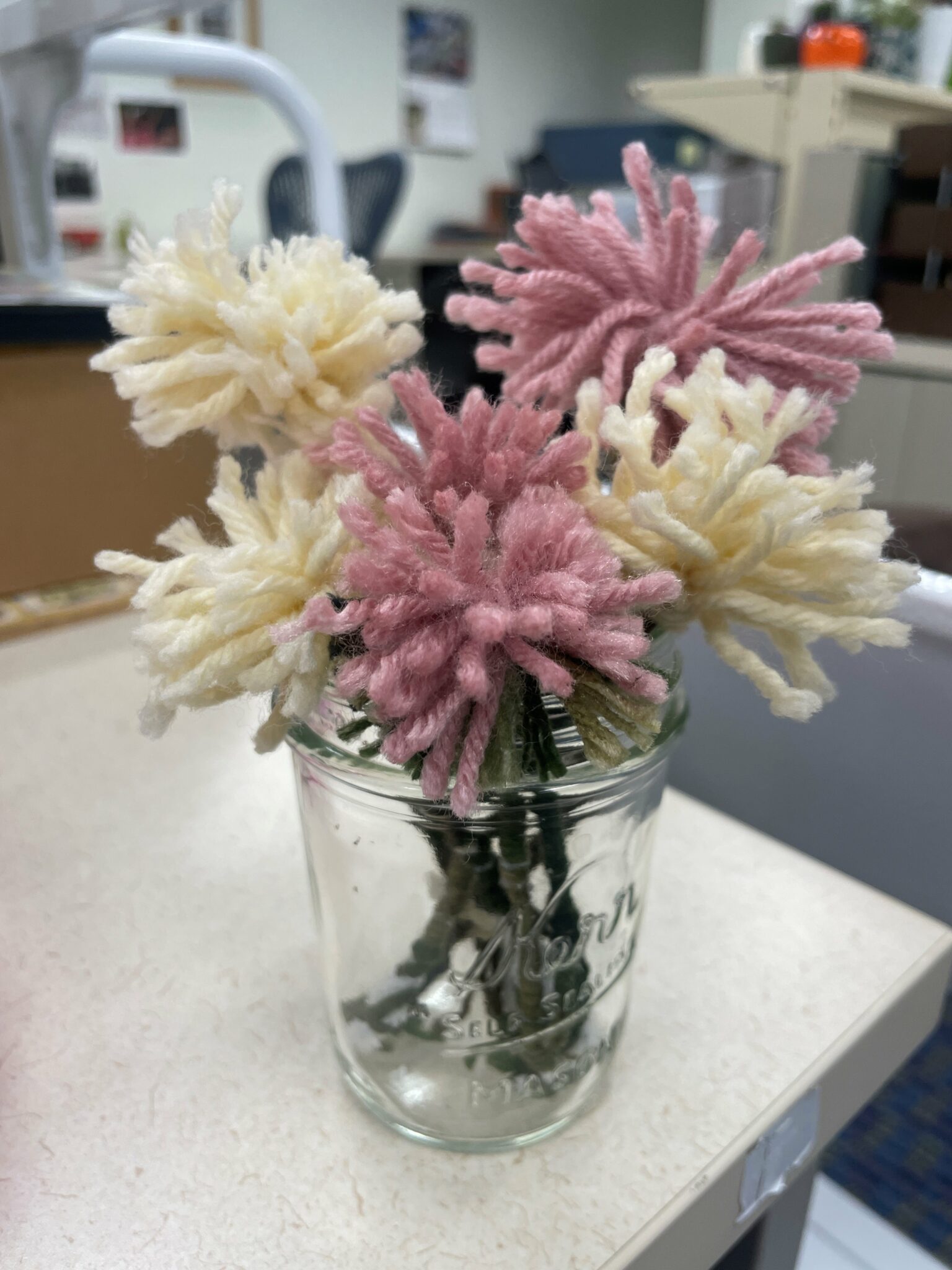 Once youโve made a variety of yarn flowers, you can put them in a vase to brighten up a room or work space. โจ