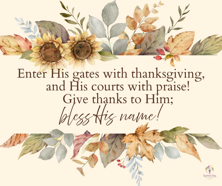 Psalm 100 invites us to embrace a spirit of thanksgiving that is grounded in the nature of God. Let this gratitude influence your words, your worship, and the way you serve others—both today and every day. May we always “give thanks to Him and bless His name!”